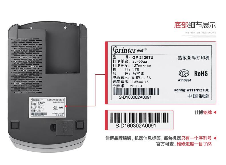 佳博GP2120TU熱敏打印機(jī)不干膠三防貼紙手機(jī)服裝吊牌貨架條碼藍(lán)牙二維碼奶茶超市面包食品價(jià)格倉庫標(biāo)簽打印機(jī)